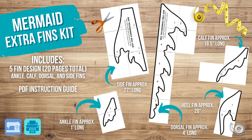 Whether you are making a Spandex/Lycra tail, or using white Scuba Knit for a base for a painted tail you can use these extra fins to add a splash of magic to your next mermaid project!