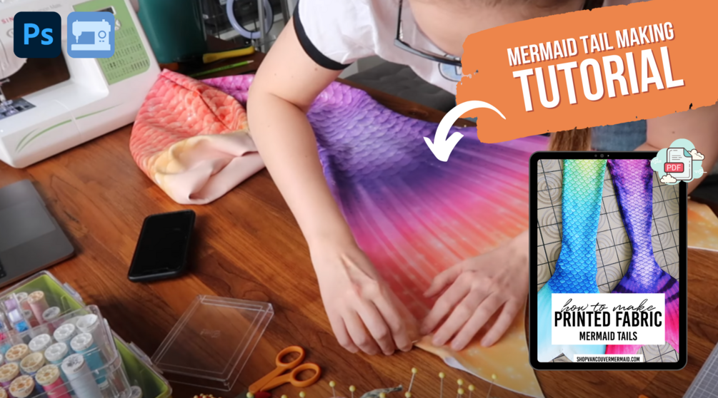 In this eBook I will take you through the process of making a printed fabric mermaid tail, materials and programs, choosing a mermaid monofin, what fabric and how much to buy, taking measurements and creating a digital pattern, preparing your fabric and files to print, sewing your tail, and maintaining your tail.